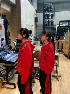 ダンス発表前に、あいな&ちすず が、インタビューにもしっかり対応できてました💛